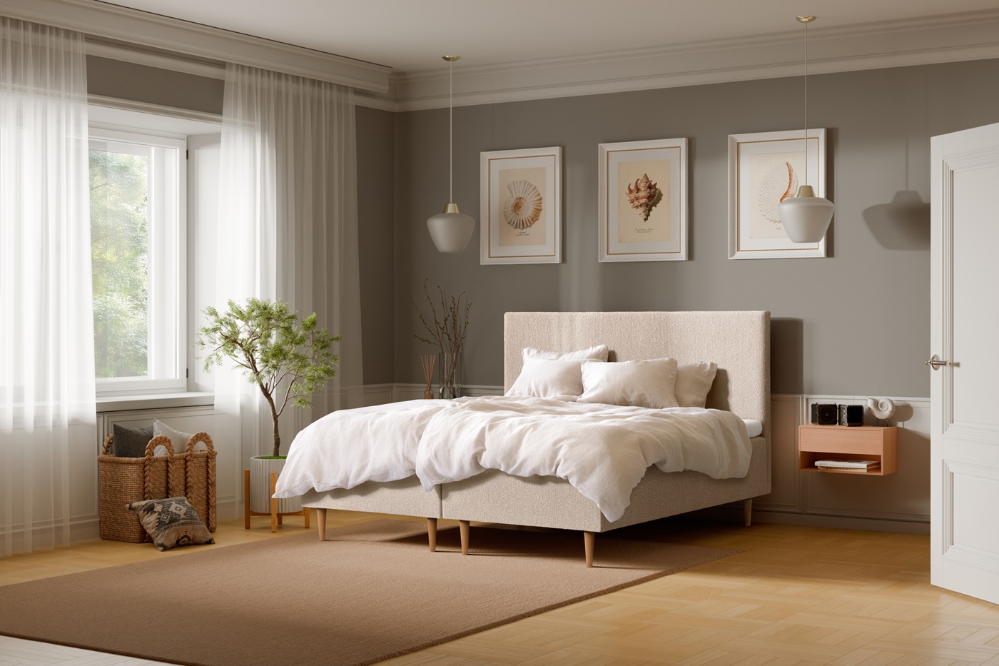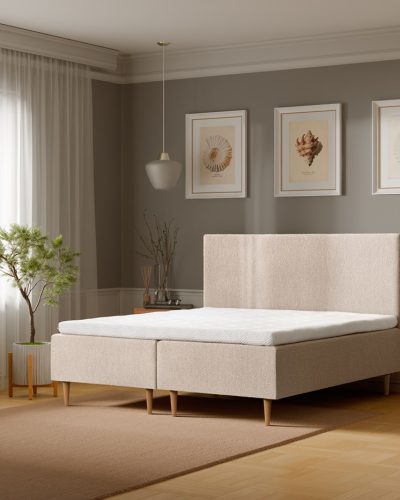 Sängynpääty viimeistelee vuoteen ja makuuhuoneen ilmeen. Pehmeä, eläväpintainen kangas tuo sänkyyn hienostuneen, mutta rennon ilmeen.